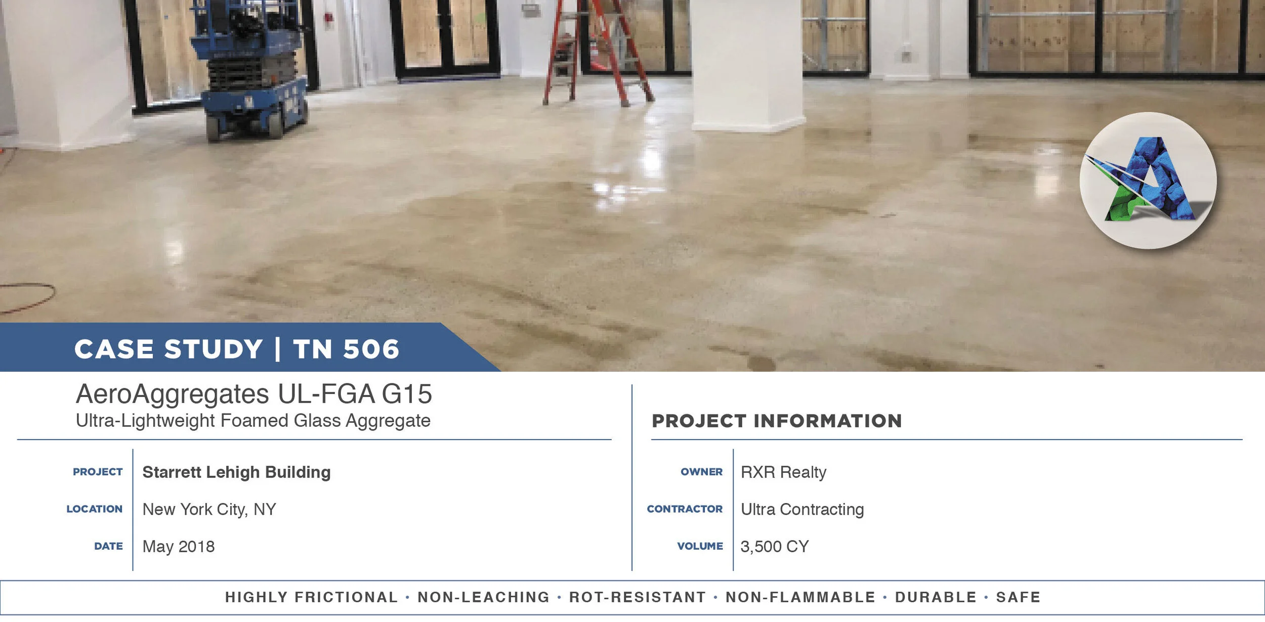 • Concrete slabs designed with an underlying 3-foot-thick layer of ultra-lightweight foamed glass aggregate also acting as a drainage and insulation material.